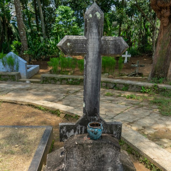 Makam P. Schraeder sangat sederhana dan terletak di belakang patung Salib Milenial
