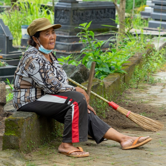 Pengurus kebersihan Kerkof Mendut yang membuat makam ini bersih dan rapi.